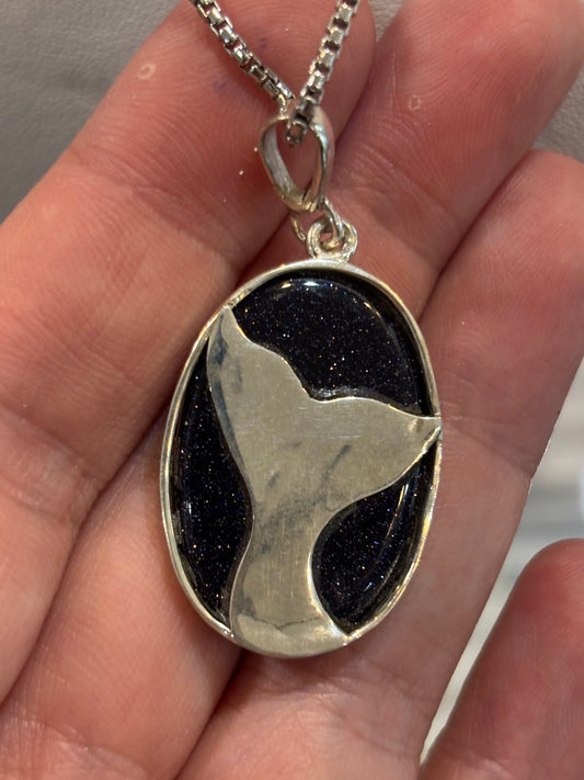 Sterling Silver Blue Goldstone Whale Tail Pendant