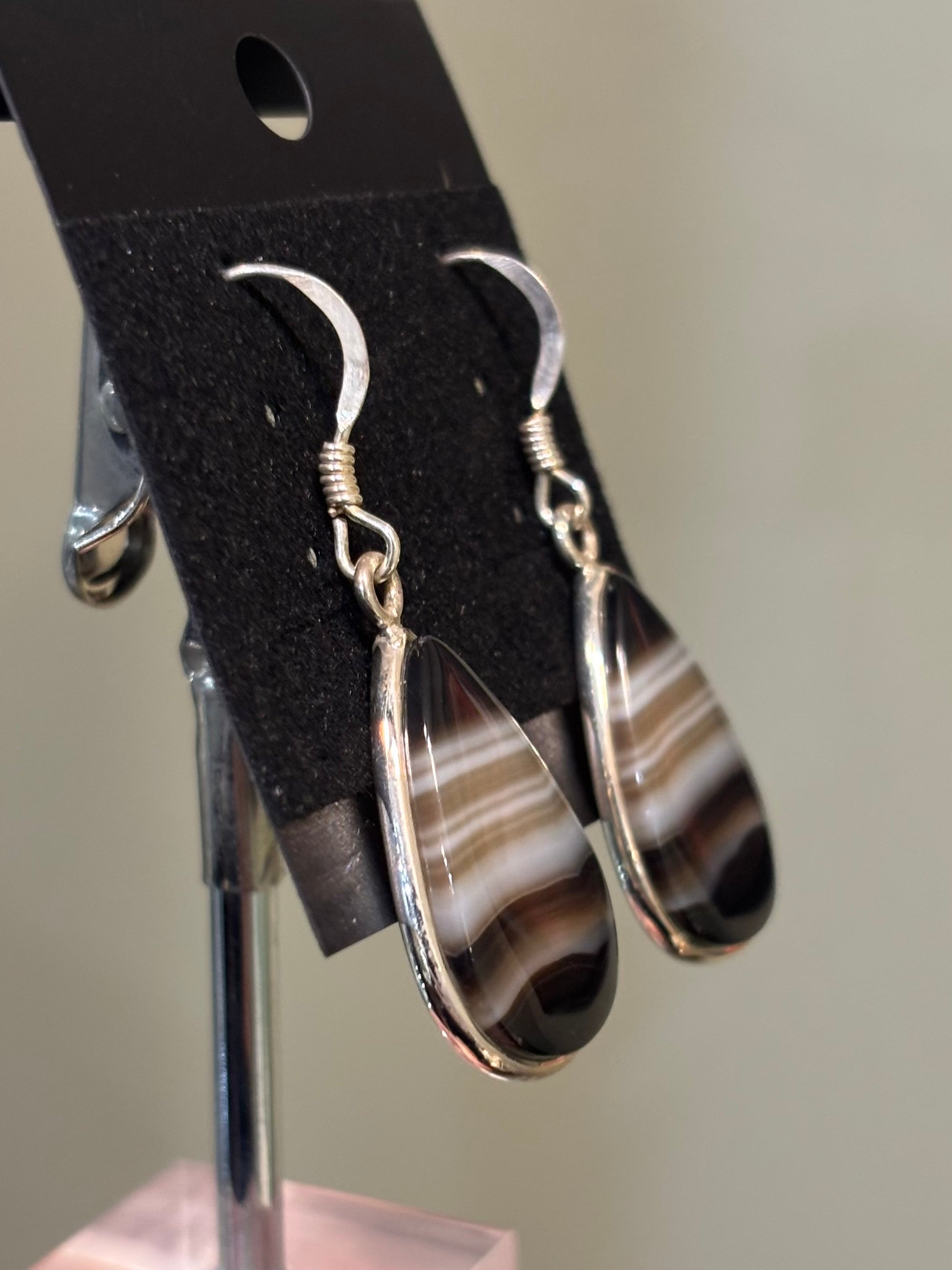 Sterling Silver Pear Shaped Banded Agate Dangle Earrings